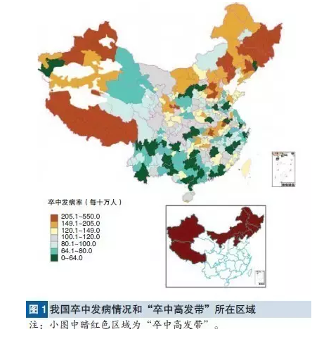中國卒中帶 研究顯示,中國西北部九省市或自治區(黑龍江、西藏自治區、吉林、遼寧、新疆維吾爾自治區、河北、內蒙古自治區、北京及寧夏回族自治區)的卒中發(fā)病率較高,構成中國卒中帶。卒中帶的卒中發(fā)病率為236.2/10萬(wàn),顯著(zhù)高于卒中帶之外地區的發(fā)病率109.7/10萬(wàn)。